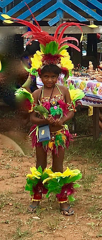 What an amazing opportunity to visit a village of 75 people nestled on the Amazon. The children of Boca de Valeria adorn themselves with colorful native attire and greet their visitors with open arms (and open hands :-). Since this type of visit is rare, they not only don't seem to mind the intrusion, but they are quite festive. It must provide them with a great economic influx. They offer boat tours and have even built a covered platform to serve...you guessed it...ice cold beers. (Watch Video)